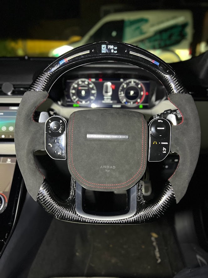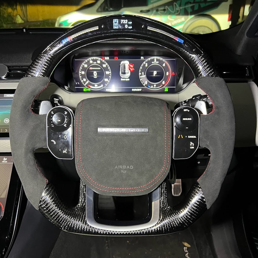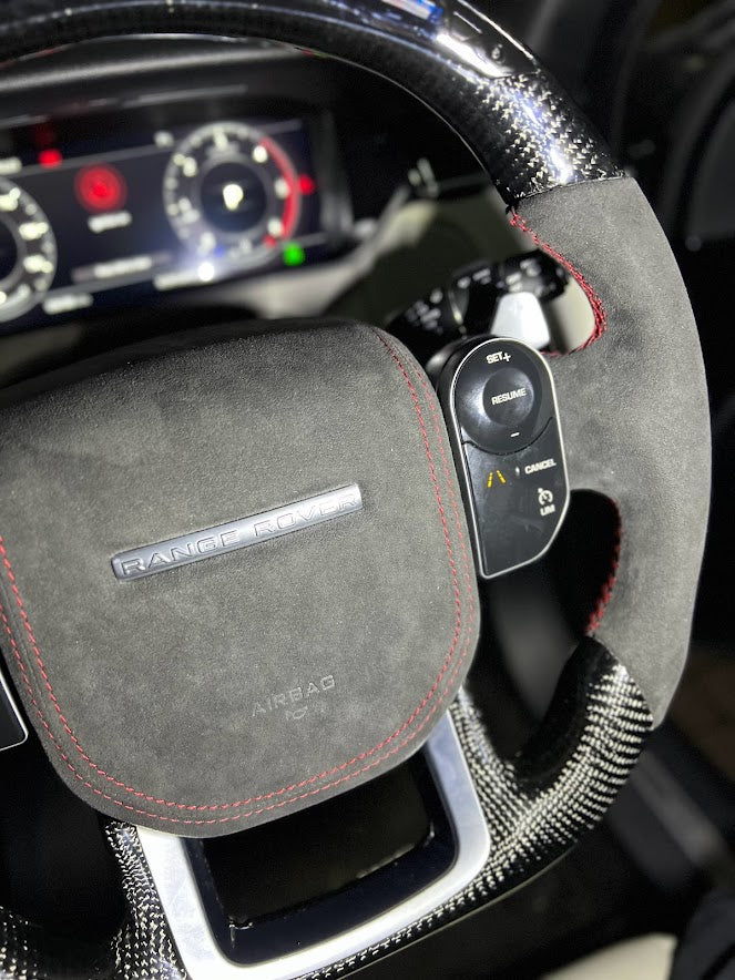 Our custom airbags are moulded in high quality ABS plastic to replicate factory designs internally and achieve an excellent fitment standard. Created with your choice of materials. Choose from Alcantara, leather and carbon to achieve a real personalised finish whilst maintaining authenticity with a Land Rover Range Rover emblem.