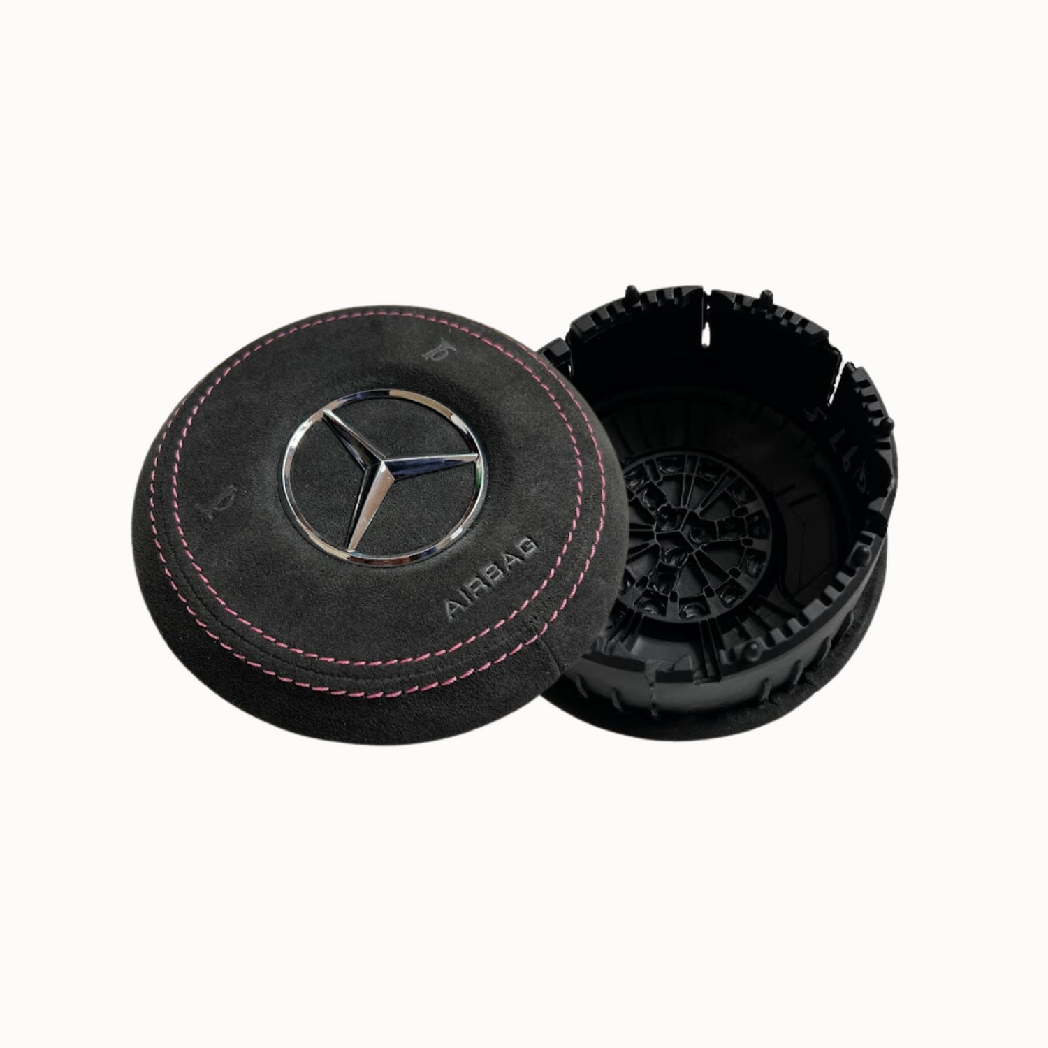 Our custom airbags are moulded in high quality ABS plastic to replicate factory designs internally and achieve an excellent fitment standard. Created with your choice of materials. Choose from Alcantara, leather and carbon to achieve a real personalised finish whilst maintaining authenticity with a Mercedes-Benz emblem in your chosen colour to match the stitching.